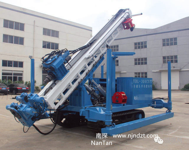 YDL-300CX型全液壓多功能鉆機是根據(jù)當前國內市場形勢所研發(fā)的新型產品,是一種新型、高效、節(jié)能、多功能的全液壓式驅動、動力頭式、柴油機作為動力的多功能鉆機。