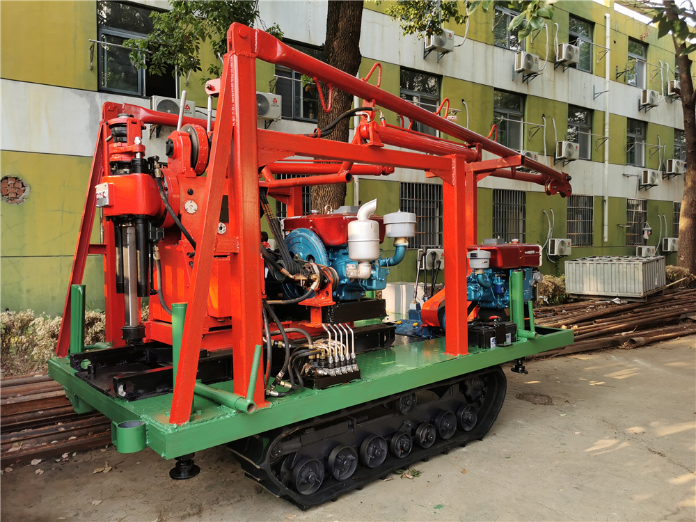 GXY-1C-L-02-B-STRZT履帶鉆機(jī)橡膠履帶底盤、動(dòng)力(柴油機(jī)或電機(jī))、GXY-1C高速鉆機(jī)、鉆機(jī)平臺(tái)、液壓支撐腿系統(tǒng)、人字形全液壓起落架、泥漿泵共同組裝在一個(gè)機(jī)架上。鉆機(jī)一個(gè)動(dòng)力柴油機(jī)或電機(jī))或加裝BW160A泥漿泵一體底座與鉆機(jī)共用動(dòng)力,橡膠履帶底盤一個(gè)動(dòng)力柴油機(jī)或電機(jī))帶動(dòng)或加裝BW160ABW200A泥漿泵,互不干擾,避免單動(dòng)力變換負(fù)荷造成磨損影響施工。