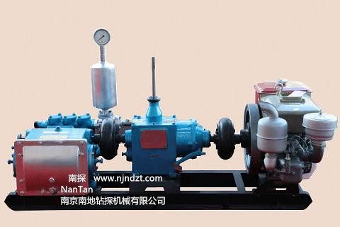 主要特點(diǎn):1.具有可滿足大、小口徑鉆機(jī)所需的八擋流量,流量調(diào)節(jié)范圍大,參數(shù)選擇合理。可與XY-4巖心鉆機(jī)和XY-5型鉆機(jī)配套使用??蓾M足不同口徑、不同孔深、不同地質(zhì)巖心鉆探的需要。 2.活塞為碗形加尼龍靠背的自封式S型聚胺脂橡膠活塞,大大提高使用壽命。 3.拉桿上設(shè)有五道防塵密封圈,以防止液力端的泥漿帶入動(dòng)力端和動(dòng)力端潤(rùn)滑油濾。經(jīng)多次生產(chǎn)試驗(yàn)證明,密封可靠,性能良好。致使齒輪延長(zhǎng)使用壽命。 4.進(jìn)排水閥采用鋼球。并在閥蓋上設(shè)有減聲橡膠墊,以減少?zèng)_擊噪聲。 5.壓力表采用BY-1型抗震壓力表,壽命長(zhǎng)。 6.結(jié)構(gòu)緊湊,造型美觀。 7.可拆性好,便于維修和搬遷。