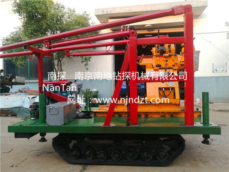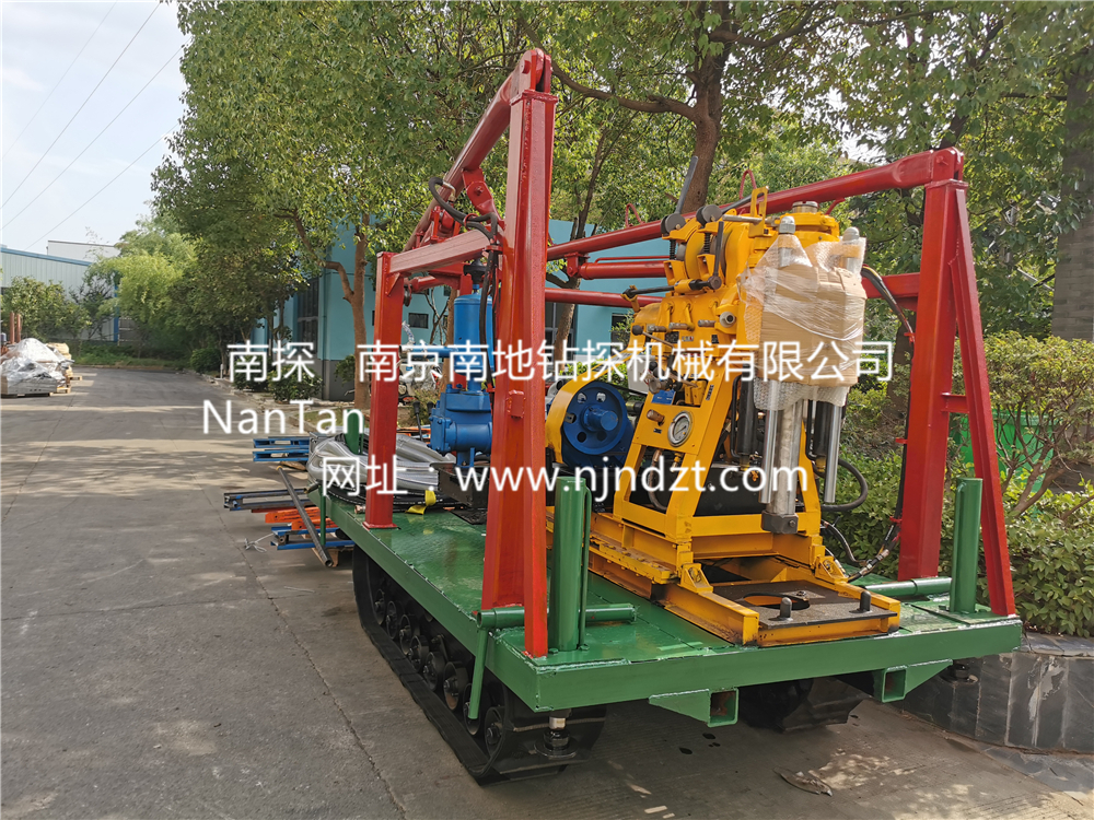 4、鉆機(jī)、泥漿泵、塔架一體,搬家方便快捷,可自行上下汽車搬家時(shí)鉆桿鉆具等一切東西均可放在履帶底盤上一次運(yùn)走。