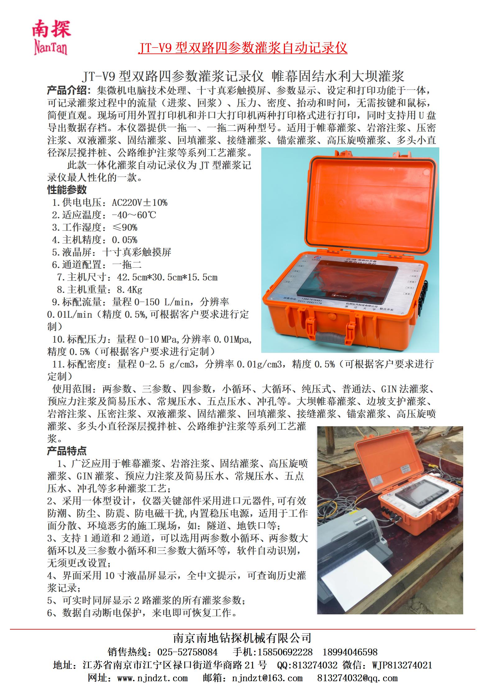 JT-E2灌漿記錄儀、JT-V9型灌漿記錄儀
