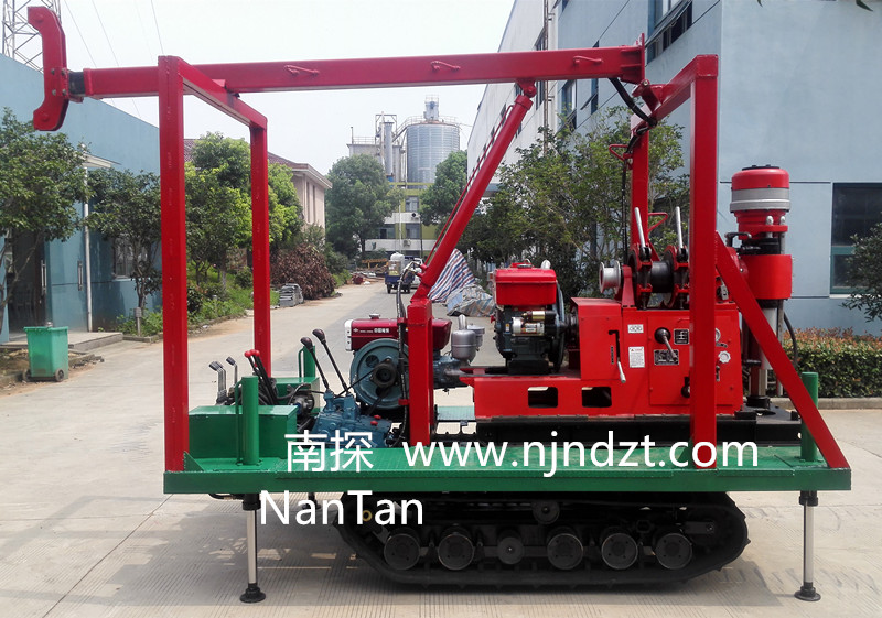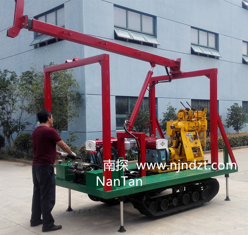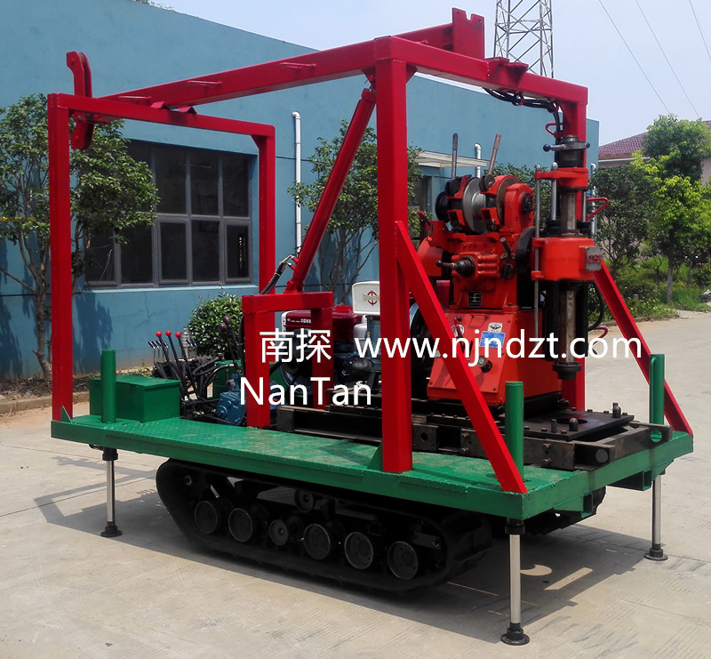 該履帶底盤承載重量達4T,可以裝載各種小型鉆機,如:XY-1-1、XY-1、XY-1A、XY-1A(YJ)、XY-1A-4、XY-1A-5、XY-1B、XY-1B-1、XY-1B-2、XY-200、XY-200(YJ)、XY-200B、XY-200B-1、XY-200B-2、GXY-1系列、GXY-2Q、GXY-200B、GYQ-200、GYQ-200A、GK180、GXY-2K、GXY-2C等100-300米鉆機,并可同時載BW160、BW160A、BW200BW200A型泥漿泵,具有可調(diào)伸縮式液壓起落鉆塔、行走方便等特點,廣泛適用于公路、鐵路、水電、橋梁、壩基等的工程地質(zhì)勘察、地質(zhì)巖芯鉆探、物理勘察、小型灌漿孔、爆破孔、水井孔和空調(diào)孔的鉆進。