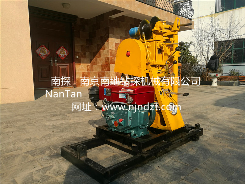 NTQZ-50B-1型鉆機是一種具有油壓給進的輕便鉆機,配置移位底座、手控+液壓卷揚機、4.5米高三角架鉆塔。額定鉆孔深度50米,最大開孔直徑允許為150mm,終孔直徑為75mm,孔徑46-110mm,孔徑大小、鉆進深度根據(jù)地層情況而定,鉆機根據(jù)用途既可以取土樣、巖芯樣,也可以不取芯鉆孔(鉆孔灌漿、水井等),或者進行重型動力觸探和標貫試驗(SPT)、沖擊提取不擾動土土壤取樣原狀土或者沙土取樣。是一種多用途液壓輕便型鉆機。